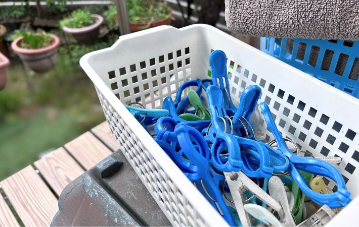 実はこれまで洗濯ピンチを外の物干しスペースに置きっぱなしにしていたので、日差しや雨で劣化しないかずっと心配だったんです。