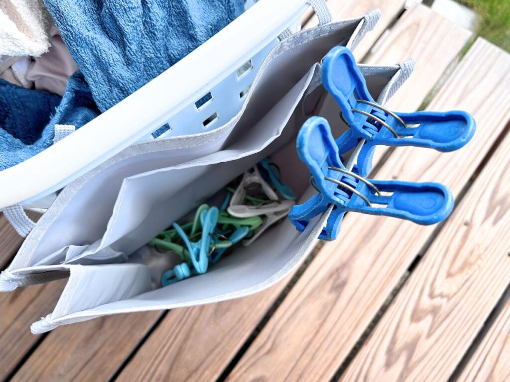 洗濯物を干すタイミングで使ってみると、「この収納ポケットがあるのとないのとでは全然違う!」とその便利さを実感します。