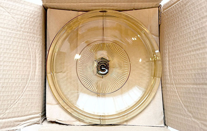 Amazonで注文した翌日、ダンボールに梱包された『アンバーガラスのキャセロール』が到着!