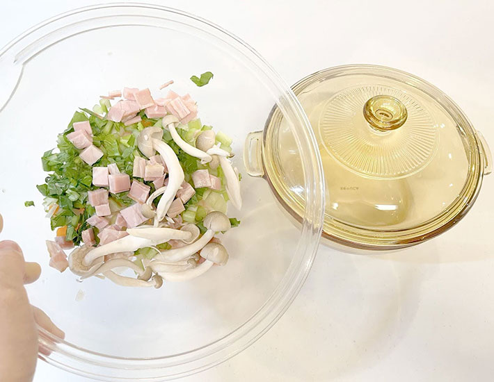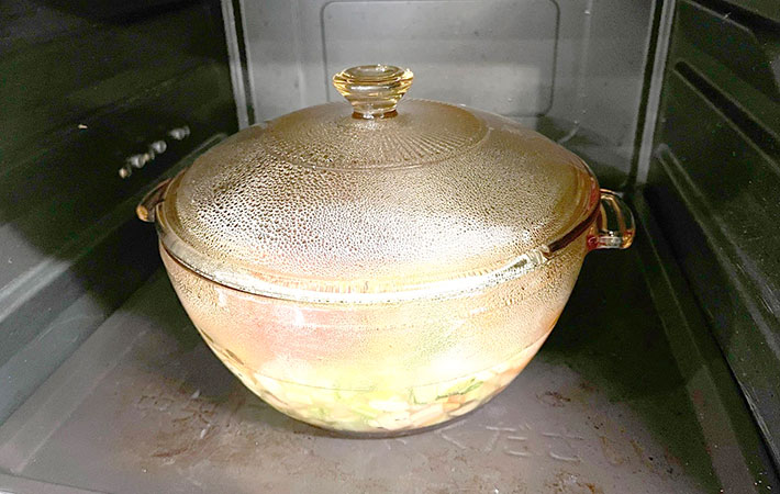 しっかり蓋をして、後の調理は電子レンジにお任せしようと思います。