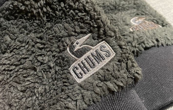 手の甲にはチャムスの象徴『ブービーフェイス』ロゴが刺繍されていて、アウトドアブランドらしいデザインです。