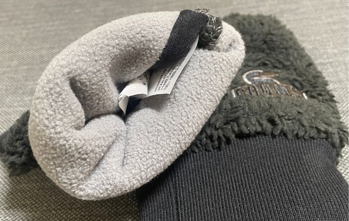 表はもこもこのボアフリースですが、内側もやわらかなマイクロフリース素材で、ふわっと包まれるような温かさが広がります。