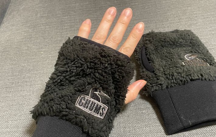 チャムスの定番素材『ボンディングフリース』を使ったフィンガーレス手袋。