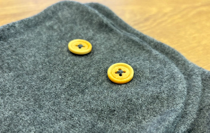 ・ボタンの位置を縫い直せば、自分に合わせて首回りを調節できるのもいい。風が強い日はこの上にマフラーを巻いてもいいかも。