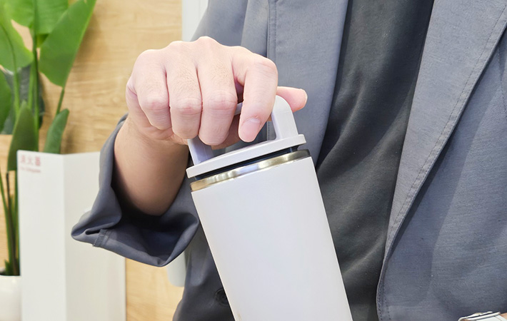 手を通して蓋をしっかり握れるので、開け閉めの時に力が入りやすく、持ち運ぶ際にも活躍します。