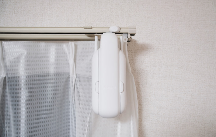 使うには、専用のアプリを本体と連携し、カーテンレールに設置する必要があります。