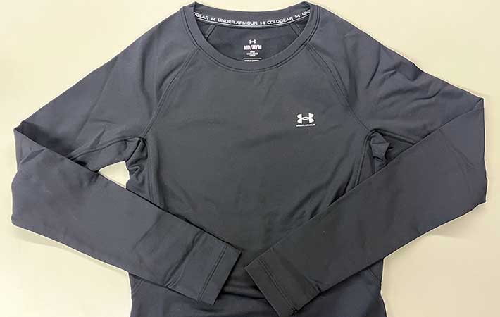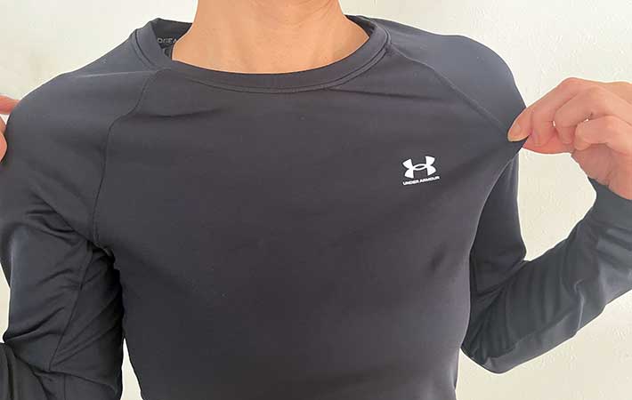『コールドギア』の着心地を確かめるべく購入したのは、ベーシックな黒のクルーネックシャツ『UAコールドギアアーマー クルー シャツ(トレーニング/WOMEN)』。