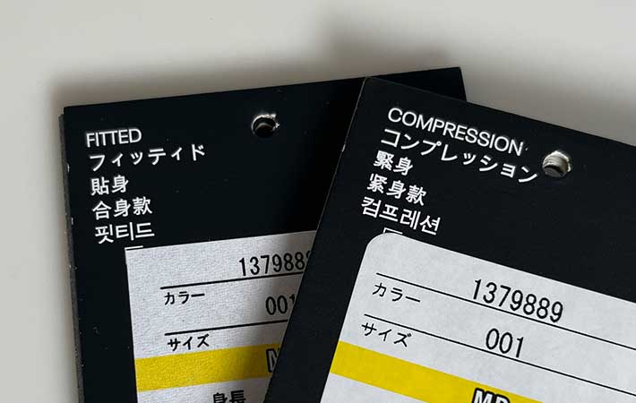 届いてから気付きましたが、上下でフィットが異なり、トップスは『フィッティド』、レギンスは『コンプレッション』です。