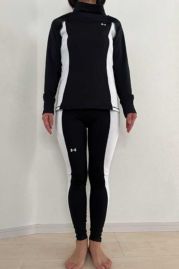 トップスの『UAコールドウェザー ファネルネック シャツ(トレーニング/WOMEN)』と、上下セットで試してみることにしました。
