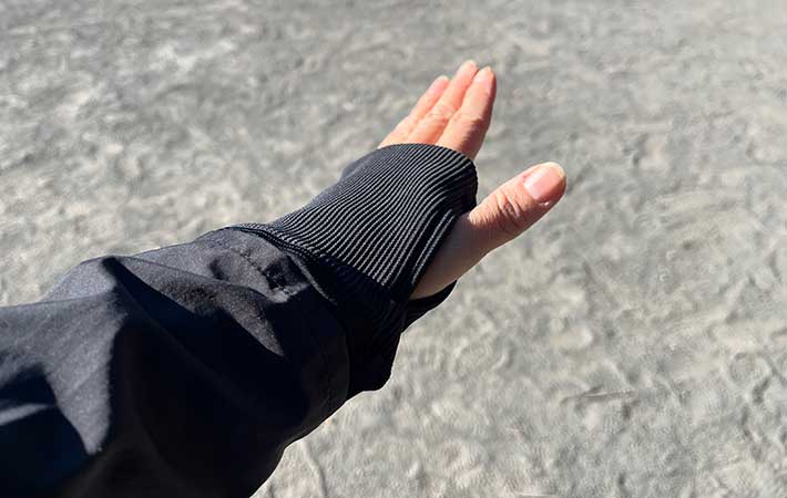 袖口にサムホールがあり、保温性もアップ。