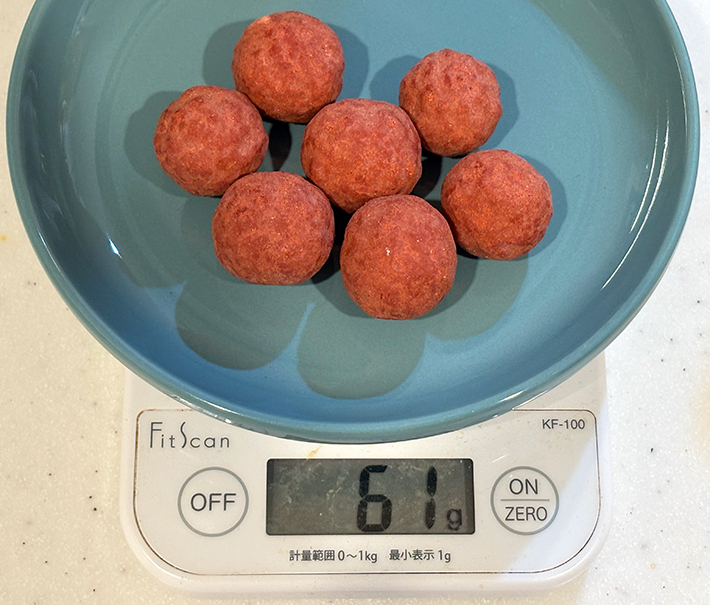 ちなみに1袋あたり7粒で、パッケージ表記とほぼ同じ61g入りでしたよ。