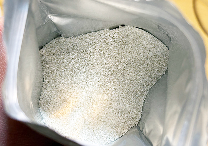 袋の中から現れたのは、華やかな桜色ではなく、白色の粉です。