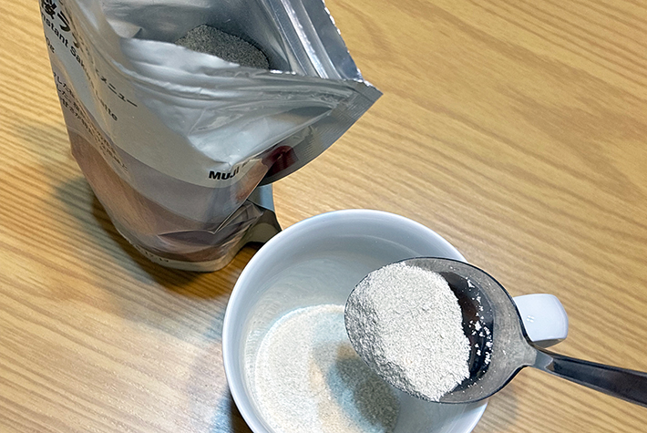 カップにスプーン3杯の粉を入れて、約140㎖の湯を注ぎました。