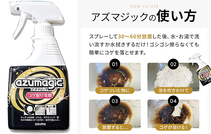 スプレーして放置するだけで、スルッと汚れを落とせる『アズマジックコゲ取り洗剤』など、人気商品が多数そろっています。