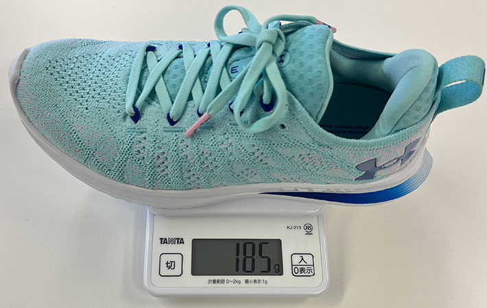 185gだった『ベロシティ3』と比べると重いですが、レディースのランニングシューズとしては平均的な重さ。