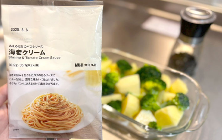 「30分でこの味は強い」 無印良品のパスタソースで簡単『海老グラタン』 ホーム・キッチン By - UPDATE編集部 更新:2025-12-29 ※本記事はUPDATEが独自に制作したコンテンツです。また、本記事を経由して商品の購入が発生した場合に、ECサイト等から送客手数料を受領することがあります。 「今日の夕飯、何にしようかな?」 忙しい中、毎日献立を考えるのって大変ですよね。 そんな時に便利なのがレトルト食品。筆者も時間のない時や、料理を1から作るのが面倒という時によく使用しています。 中でも無印良品のパスタソースシリーズが大好き! たらこソースや海老クリーム、ペペロンチーノなど、さまざまな種類をおうちにストックしています。 Amazonで『無印良品』の『パスタソース』を見る 楽天市場で見る もちろんそのままパスタにかけるのもおいしいのですが、ちょっとアレンジして使うのもおすすめ! 今回は『あえるだけのパスタソース 海老クリーム』を使って、簡単だけどおいしい海老グラタンを作っていきたいと思います。 パスタソースを使って簡単『海老グラタン』 2人前を作るのに必要な材料はこちら! あえるだけのパスタソース 海老クリーム2人前(無印良品) 牛乳大さじ4 海老6尾 じゃがいも中4個 ブロッコリー1/3ふさ シュレッドチーズ50g 黒こしょう少々 パン粉適量 MUJI無印良品 ーより引用 まずは、じゃがいもの皮と芽をとって4等分に切ります。 ブロッコリーは、食べやすいサイズに房をわけておきましょう。 耐熱容器にじゃがいも、ブロッコリー、牛乳、黒こしょう、そして『あえるだけのパスタソース 海老クリーム』を入れてラップをかけ、600Wの電子レンジで12分加熱します。 筆者は洗い物を減らすためにグラタン皿にそのまま入れましたが、浅いグラタン皿は牛乳の吹きこぼれに注意!筆者は少し吹きこぼれてしまいました…。 レンジから取り出したら、ヘラで潰しながら、さっくりと混ぜます。 シュレッドチーズ、海老、パン粉を順に乗せて…。 今度は750Wのトースターで6分焼きましょう。 焼きあがったら、パスタソースについていたパセリを上からふって、完成です! 30分程度で、おいしそうな『海老グラタン』が仕上がりました。 実際に食べてみると、想像以上の本格的な味わいにびっくり! 夫からも「お店の味じゃん」と大好評でした。 たったの30分でここまでの完成度とは…。パスタソース、強い! 1からグラタンを作るとなるともっと時間がかかるので、時短テクとしてリピート確定です。 今回使用した無印良品のパスタソースは、Amazonでも購入できますよ。 みなさんもぜひお試しください! Amazonで『無印良品』の『パスタソース』を見る [文・構成/UPDATE編集部] 出典 Amazon 関連ワード 検証無印良品 この記事をシェアする Share Post LINE