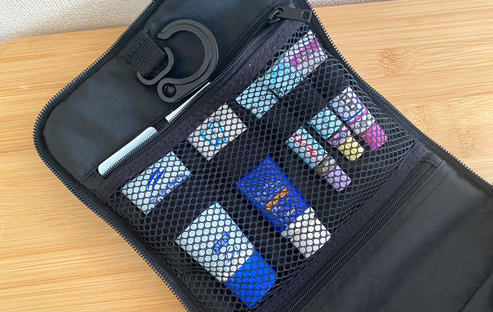 ゴムバンドで固定されて整列しているので、何がどこに入っているのかがひと目で分かるのも嬉しいポイント。