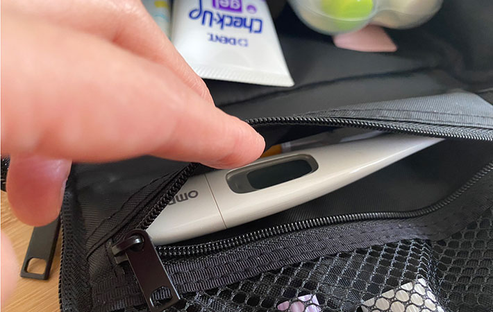 筆者はここに、体温計や子供の鼻掃除用ピンセットなどを収納。耳かき、爪切りを入れるのもよさそうです。