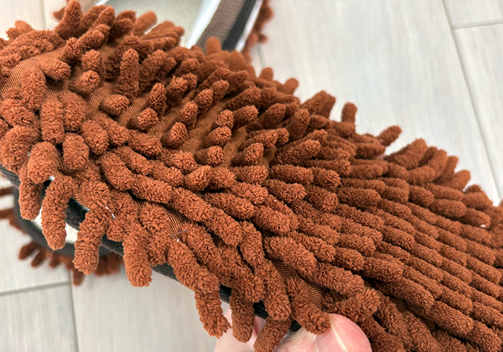 なんと、『モップスリッパ』を履いているだけで、マイクロファイバーがホコリや塵を絡め取ってくれるのです!