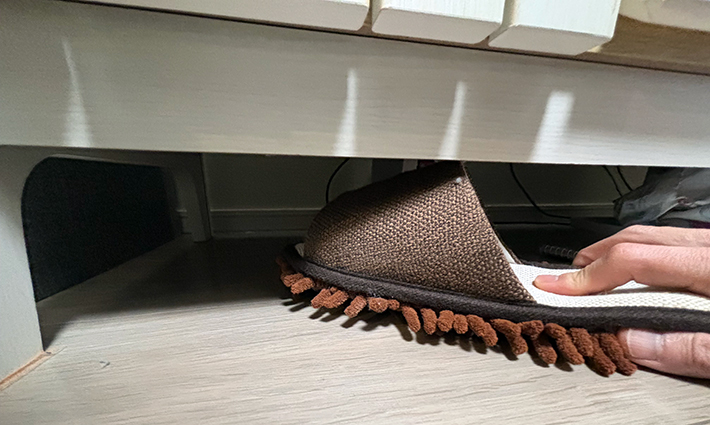 しかし、『モップスリッパ』を履いた足なら、自分の思うままに動かせるので、掃除がスムース!