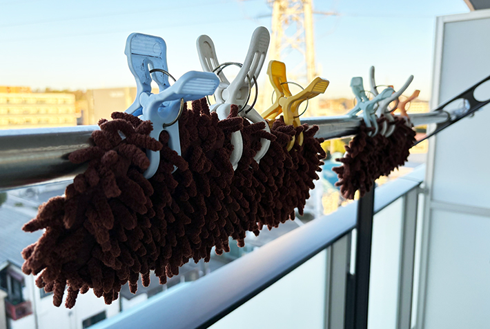 洗い終わったら、衣類と同じように、ベランダなどで干すだけ!洗って乾かせば、繰り返し使えますよ。