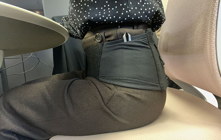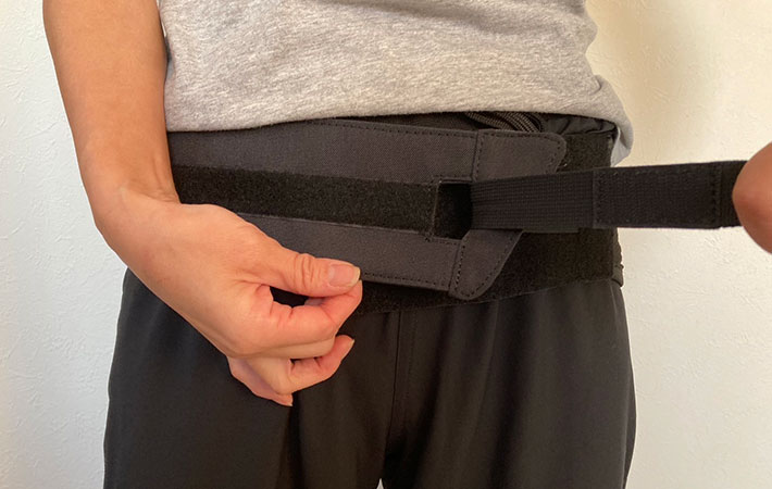 実際に装着してみると、ポーチ自体が骨盤ベルトのような役割を果たし、しっかりと骨盤を支えてくれます。