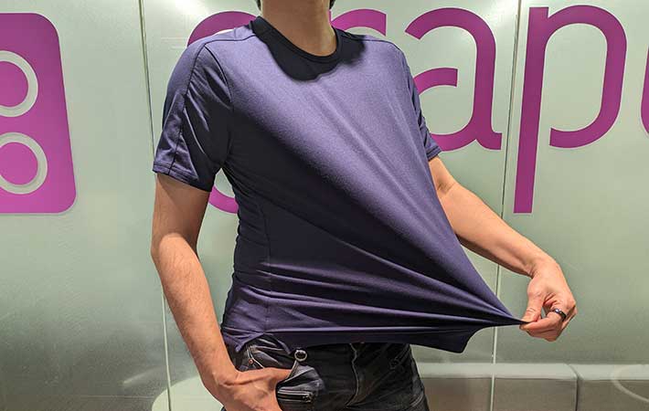 グレーのエレベーティッドTシャツも同じように、汗を素早く吸収して外部に発散する『水分コントロール』という機能を搭載。