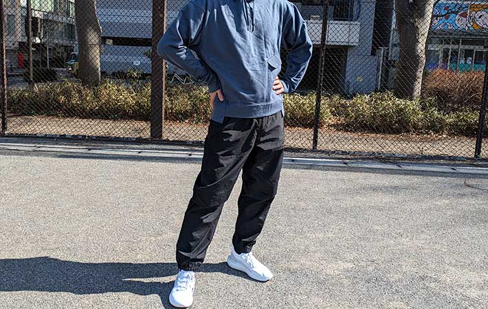 ジョガーパンツを履くうえで重要なのが、サイズ感です。