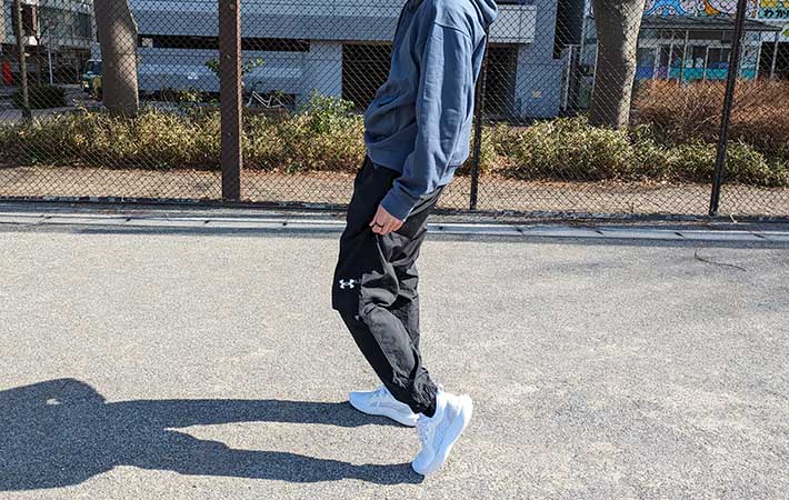 アンダーアーマーのジョガーパンツの履き心地やサイズ感、動きやすさなどを検証してみました。