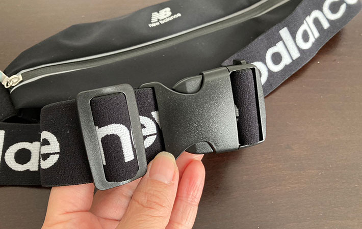 当たり障りのないデザインのランニングポーチが多い中、このランニングポーチは『New Balance』の文字が大きめに入った幅広のベルトが特徴的です。