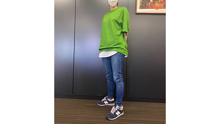 996の定番カラーネイビーを履いた2児の母、30代女性のコーデがこちら。