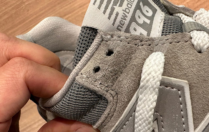 ニューバランスのスニーカーに空いている2つの穴は、靴ひもを通す時に活用できるシューホール。