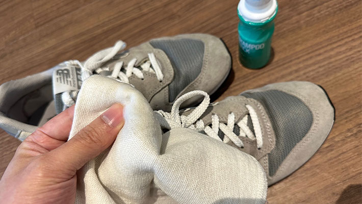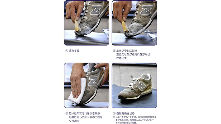 ニューバランス『996(GR2)』の場合は、アッパーにピッグスキンスエードを使っています。スエードにも使えるクリーナーがベストですね。