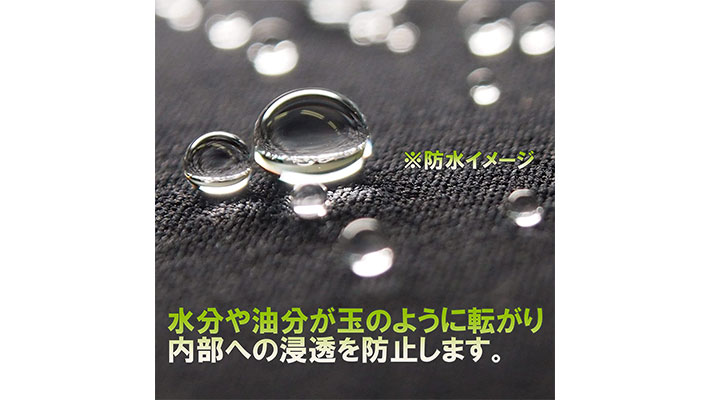 ・フッ素系撥水、撥油剤のコーティングにより水分、ゴミ、油分などの汚れから守る。