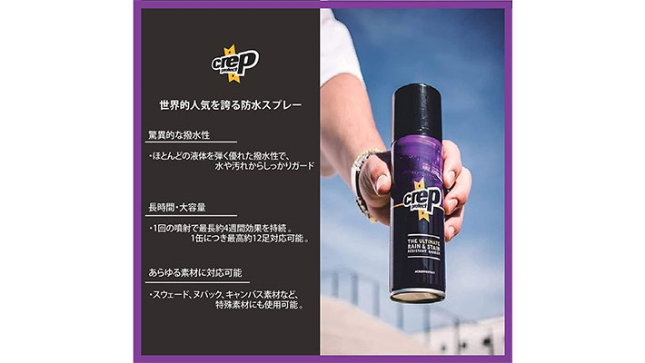 ・通気性と風合いはそのままに、水、油、濡れ、汚れからスニーカーを守る。