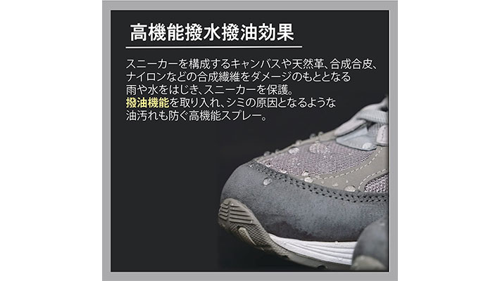 ・水、油、濡れ、汚れからスニーカーを守る。