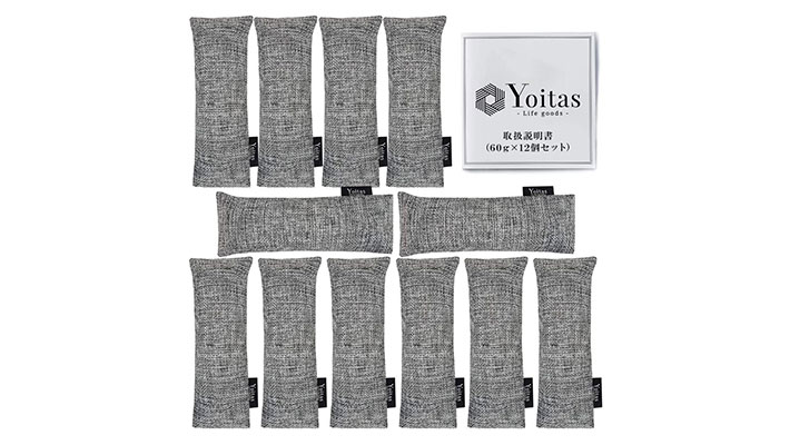 Yoitas 除湿 消臭 「竹炭 パック」除菌効果 繰り返し使用可能 [消臭剤] 脱臭 靴 くつ 革靴 ブーツ 水虫 対策 [除湿剤] 湿気取り 下駄箱 防カビ [乾燥剤] 乾燥 (12個入(6足分))