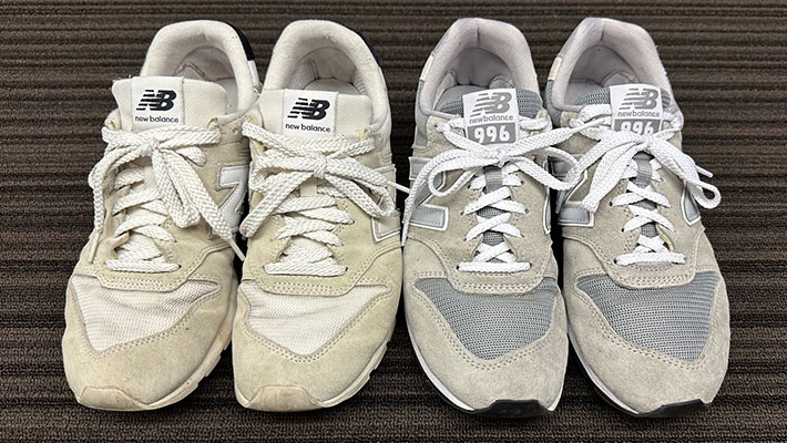 ケアをしていたグレー系の『996(GR2)』は状態がよかったですが、雑に履いていたホワイト系の『996(RF2)』に関しても、まだまだ現役で使えるレベルです!