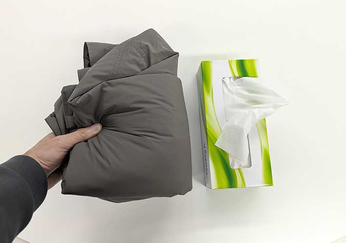 折り畳めばティッシュ箱程度の大きさになるので、ちょっとしたサイズのバッグがあれば持ち運びも楽々。