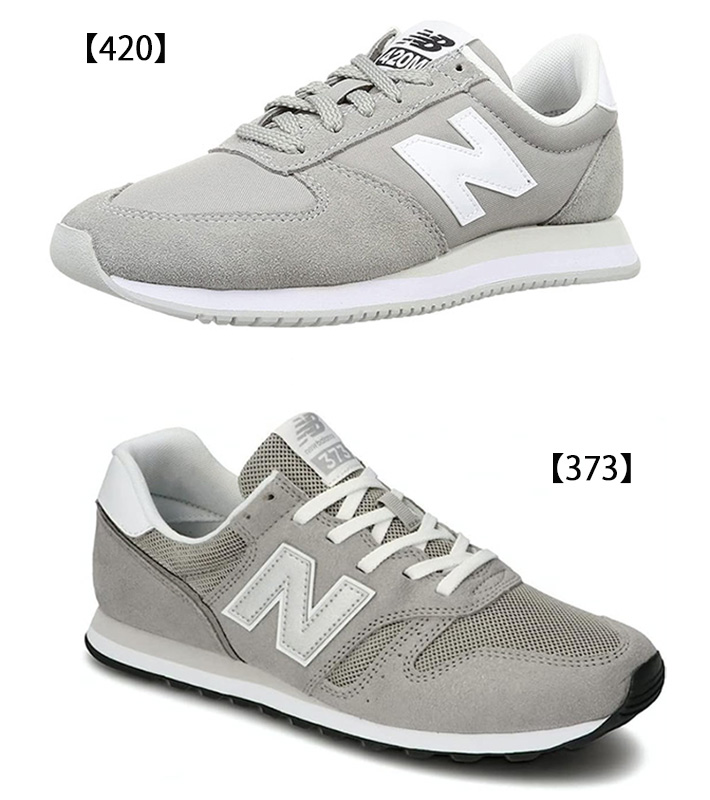 コスパ最強! ニューバランスの隠れた名品『420』と『373』の違いをチェック ファッション By - UPDATE編集部 更新:2026-01-03 ※本記事はUPDATEが独自に制作したコンテンツです。また、本記事を経由して商品の購入が発生した場合に、ECサイト等から送客手数料を受領することがあります。 空前のニューバランスブーム真っただ中の昨今。 街中でもクラシカルな定番モデルからハイテクモデルまで、いろいろな種類を見かけるようになりました。 そんな中、ファンの間で隠れた名品といわれているモデルが『420』と『373』。 知名度はまだそれほど高くないものの、スマートでシンプルなデザインと手頃な価格帯で、巷での人気も急速に高まっています。 この記事では、ニューバランスの注目モデル『420』と『373』を徹底比較。 デザインや価格帯も似ている2つのモデルですが、どんな違いがあるのでしょうか。 スニーカー選びで悩んでいる人は、ぜひ参考にしてくださいね! 目次 1. ニューバランス『420』とは?1.1. ニューバランス『420』の特徴2. ニューバランス『373』とは?2.1. ニューバランス『373』の特徴3. ニューバランス『420』と『373』の違いは4つ!3.1. 違いその1:Nロゴ3.2. 違いその2:ソールの高さ3.3. 違いその3:アッパーの素材3.4. 違いその4:アッパーの深さ4. ニューバランス『420』と『373』には違う魅力があった! ニューバランス『420』とは? Amazonで見る 楽天市場で見る 1970年代にニューバランスから登場した伝説のランニングシューズ『M320』の後継モデルとして、1982年に登場した『M420』。 立体成型したインソールを初めて採用し、優れた履き心地とシャープなデザインが絶賛され、当時のアメリカのランニング専門誌からも高評価を獲得。 一躍人気モデルの仲間入りを果たしました。 『M420』は生産終了になりましたが、2008年に復刻され、現在いくつかのモデルが展開されています。 日本で手に入れやすい代表的なものは以下の通り。 【ライフスタイルモデル】 ・『UL420M』:ユニセックス(日本のみの展開) ・『WL420M』:レディース(日本のみの展開) ・『IZ420M』:キッズ ・『YV420M』:ジュニア 【マルチスタイルモデル】 ・『ME420』:メンズ ・『WE420』:レディース 『ME420』『WE420』はジョギングやウォークキング向きの幅広モデルで、スポーティーなデザインです。 『ME420』 Amazonで見る 楽天市場で見る 当記事では、『M420』の流れを受け継いだ、ライフスタイルモデルの『420M』について紹介します。 ニューバランス『420』の特徴 Amazonで見る 楽天市場で見る 『420』は、極めてシンプルなデザインとスラッとした細身のシルエットが特徴。 そのため、カジュアルなスタイルはもちろん、きれいめなコーディネートにも合わせやすいので、1足あるとかなり重宝します。 レディースの『WL420M』はウィズ(足囲)B、ユニセックスの『UL420M』はウィズDで、どちらもニューバランスのウィズサイジングでいう『やや細い』作りです。 『ニューバランスのウィズサイジング』 足幅が広い人、甲高の人はややきつく感じるかもしれないので、ハーフサイズかワンサイズアップしたものを試してみてもよいでしょう。 また、『420』はカラーバリエーションがかなり豊富。 老若男女問わず好きなカラーがきっと見つかるはずです。 ユニセックスのほか、レディース、キッズ、ジュニアモデルも展開されているので、家族や友人とおそろいコーデを楽しむこともできますよ! 2023年7月現在、ユニセックスの『UL420M』とレディースの『WL420M』の公式価格は、ともに税込み8690円。 ニューバランスのほかの人気モデルと比べると、リーズナブルな価格設定になっています。 あえて特殊な素材や最新技術を搭載せず、シンプルな構造にすることで、この価格を実現できたのでしょう。 とはいえ、『420』も安定性と耐久性を高めた厚みのあるソールになっているので、極端に履き心地が悪いということはありません。 機能面では物足りなくても、そのぶん価格が抑えられていることと、使い勝手のよさを考えれば、かなりコスパがいいモデルといえるのではないでしょうか。 『420』高評価の口コミ ・レトロな感じのデザインがかわいい! ・とても履きやすくて長時間でも疲れません。 ・デザインよし、履き心地よしで、コスパ最高! 『420』低評価の口コミ ・通気性がよくないので、夏は蒸れるかも。 ・甲高なので、幅が狭く感じた。 Amazonで見る 楽天市場で見る ニューバランス『373』とは? Amazonで見る 楽天市場で見る 年齢や性別関係なく好まれるクラシカルなビジュアルが人気の『373』。 日本での知名度はまだそれほど高くないものの、隠れた名品として人気が急上昇しています。 日本で手に入れやすい『373』の代表的なモデルは、以下の通りです。 【ライフスタイルモデル】 ・『ML373』:ユニセックス ・『WL373』:レディース ・『IZ373』:キッズ ・『YV373』:ジュニア ニューバランス『373』の特徴 Amazonで見る 楽天市場で見る スタンダードなフォルムで、どんな服装にも合わせや