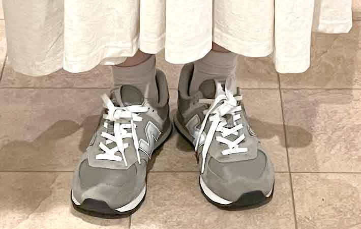 ニューバランス『574』 クラシックと他の違いは? オールシーズンで使えるコーデはこちら ファッション By - UPDATE編集部 更新:2026-01-04 ※本記事はUPDATEが独自に制作したコンテンツです。また、本記事を経由して商品の購入が発生した場合に、ECサイト等から送客手数料を受領することがあります。 『New Balance(ニューバランス)』と聞くと、サイドに『N』ロゴマークが入っている靴を思い浮かべる人が多いのではないでしょうか。 そして、なんといってもデザインが豊富で絶妙に違うディティールを見ると、どれを買うかをついつい悩んじゃいますよね。日常や運動などの使うシーンによって選べるのも嬉しいポイントです。 今回の記事では、長きにわたって愛されている『574』とはどのようなものか、クラシックとそうでないものの違いは何かを、これから使えるコーディネート例と合わせてご紹介していきます。 目次 1. ニューバランスの始まりやこれまでの歩み2. ニューバランス『574』とは? クラシックとそうでないものの違いは?3. ニューバランス『574』 コーディネート3選3.1. ティアードワンピース×ma-13.2. フード付きパーカー×タイトスカート3.3. デニムジャケット×デニムパンツ4. ニューバランス『574』 まとめ ニューバランスの始まりやこれまでの歩み ニューバランスは1906年、アメリカのボストンにてアーチサポートインソールや偏平足を補助するために、矯正用の靴を製作するメーカーとして誕生しました。 ブランド名の由来は、靴を履いた人たちに『新しい(new)バランス(balance)』感覚をもたらすというもの。 矯正靴ということもあり、専門的な知識に深い理解があってこそ製作が可能になる中で、それらのノウハウを活かし60年代にカスタムできるランニングシューズを製造開始しました。 そこから開発が進み、70年代後半にはランナーから絶大な支持を獲得。 以降、伝統を受け継ぎながらも最新のテクノロジーを集め、よりよいフィット性を追求する靴づくりを行なっています。 ニューバランス『574』とは? クラシックとそうでないものの違いは? ニューバランスがはじまって以来、『996』と並んで定番として多くの人々に愛されてきたのが『574』です。 デザイン面のアップデートやガタガタ道での走りやすさなどの改良を続けながら、ニューバランスを象徴するシルエットの1つとして支持され続けてきました。 少し厚みのある、まるっとした形がかわいいですよね。 別のスニーカーと比べてみてもシルエットがぽってりしています 舗装されていない道を歩くことを想定して作られているモデルなので、靴底の溝が深くなっています。そのため、見た目がゴツく感じるかもしれません。 ただ足元にボリュームがあると、ファッションコーデを組んだ時に全体のバランスがよく見えるので、オシャレな特徴になりますよ。 カラーバリエーションも豊富で、かわいいカラーもそろっています。 ニューバランス574 クラシックとそうでないものの違いは ニューバランス『574』のクラシックとそうでないものの違いは、定番モデルかそうでないかです。 同じ『ML574』でも、長く販売されている定番モデルである『574』にはクラシックの文字が入っており、スポットモデルのものには入っていません。 定番モデルには『Classic』の文字が入っています スポットモデルには『Classic』の文字が入っていません クラシックのほうがもともとの価格が安め。スポットのほうがもともとの価格が高い傾向にありますが、セールなどでは安くなりやすいという違いがあります。 ニューバランス『574』 コーディネート3選 季節も暖かくなり、お出かけや観光の機会が増えるのではないでしょうか。 「たくさん歩いて楽しみたい!」そんな時にぴったりな『ニューバランス クラシックML574』を使ったお出かけコーデ3つをご紹介していきます。 ティアードワンピース×ma-1 ホワイトやベージュでまとめた淡色コーデ。 足元にグレーを合わせることで、グラデーションのようにしてみました。 ガーリーな雰囲気の中にメンズライクな足元でかわいくなりすぎません。 シンプルな組み合わせなのでニューバランスのロゴが動くたびに映えます。 フード付きパーカー×タイトスカート パーカーの色とリンクさせたカジュアルコーデ。 コーデに使っているカラーと合わせて足元までまとまった印象にしました。 Iラインを意識したので、上半身と足元にボリュームを出してバランスよく。 タイトスカートの丈感と、ニューバランスの丸っこいぽてっと感で足首がきれいに見えますよ。 デニムジャケット×デニムパンツ 濃い色のデニムオンデニムコーデ。 コーデが全体的に暗くなってしまわないように、足元に明るいグレーを合わせました。 固いイメージのデニムの下に、柔らかい生地感のニューバランスを組み合わせてのっぺりしない仕上がりに。 ロールアップしたデニムから見えるコロッとした形がかわいいんです。 ニューバランス『574』 まとめ 普段何
