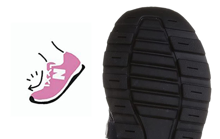 また、未発達の子供の足が自然に屈曲できるよう、フレックスグルーブ(足裏の溝)を採用。