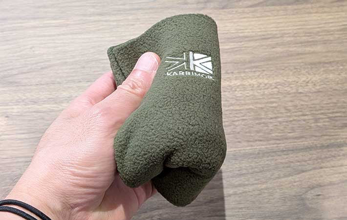 ライトネックウォーマーを使っていて感じたメリットは、軽量でコンパクトに持ち運べるのに、しっかりとあたたかいこと。