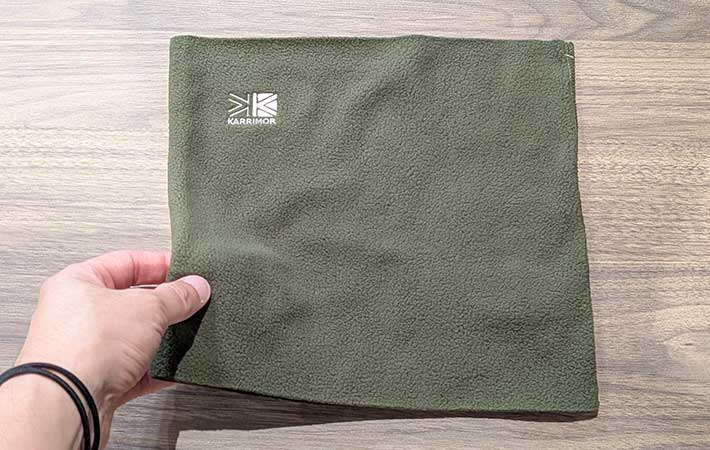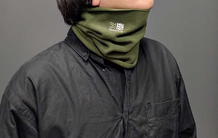 先ほどの3点をしっかりとカバーしてくれているのが、アウトドアにもカジュアルコーデにも合わせやすいと人気の『KARRIMOR(カリマー)』のネックウォーマー『light neck warmer(以下、ライトネックウォーマー)』。