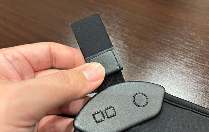 本体上部に取りつけられている、マジックテープ。これをこうして…。