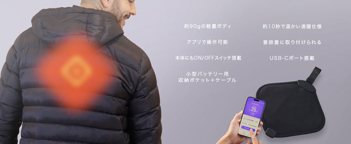 「コンセント不要」「体感的にかなりポカポカ」と評判! いつもの上着にスッと付けるガジェットの正体は? ガジェット By - akira 更新:2025-12-08 ※本記事はUPDATEが独自に制作したコンテンツです。また、本記事を経由して商品の購入が発生した場合に、ECサイト等から送客手数料を受領することがあります。 「冬の寒さが何よりも苦手」というみなさん、お待たせしました。 暖房やヒーターをつけても身体があたたまらないと、いつも以上に動きが鈍くなってしまうもの。 できるだけ手軽に、そして素早く身体をあたためられるアイテムがあると便利ですよね。実はあるんです。 それは、『CIO WEARHACK 2』! 『CIO WEARHACK 2』はその名の通り、着るタイプのガジェットです。 「着るタイプのガジェットって、どういうこと…?」と思ったかもしれません。ポイントはここです。 本体上部に取りつけられている、マジックテープ。これをこうして…。 上着のハンガーループと呼ばれる輪っかや、タグなどにマジックテープを通しましょう。 『CIO WEARHACK 2』を上着に固定したら、裏面のポケットに小型のモバイルバッテリーを入れ、ポケット内にあるUSB-Cケーブルを接続。 なおモバイルバッテリーは付属していないので、別途用意しましょう。 接続するモバイルバッテリーは手のひらサイズが目安 ここまでできたら準備完了です。本体上部のスイッチを押して、アウターを普段通り羽織れば…。 赤丸部分のあたりにあります 「背中がポカポカして、あたたかい!」 そう、『CIO WEARHACK 2』はアウターなどの羽織りものをウェアラブルヒーターに変えてしまうガジェットなのです! 電源をオンにしてから1分も経たないうちにポカポカし始め、背中が一気にあたためられます。 屋内で数分試しただけですが、かなりのあたたかさで、ダウンジャケットがなくても外を歩けそうな予感…! 【ネットの声】 ・あたためられるのは首の下から背中の上部と限定的だが、実際に使ってみると体感的にかなりポカポカする。 ・モバイルバッテリーを使えばコンセント不要なので、出先でいつでも使えるのが便利! ・CIOの10,000mAhモバイルバッテリーと組み合わせれば、1時間ちょっとの通勤往復も大丈夫。 ・基本的な使い方とは別にお腹や腰に当てて使っているが、長時間のデスクワークでかなり役立っている。 筆者は本体のボタンを押して電源をオンにしましたが、スマホに専用アプリをインストールすれば、スマホで操作することもできるのだとか。 また、本体下部にはUSB-Cポートがついているので、USB-Cケーブルをつないで使用することもできます。 上からブランケットをかけるなど、『CIO WEARHACK 2』を使った暖の取り方はバリエーションが多いかもしれません。 このように、いつもの上着があっという間にウェアラブルヒーターになる『CIO WEARHACK 2』はかなりの便利さ。 お気に入りの1着に『CIO WEARHACK 2』を取りつけて、寒空の下でもポカポカしながらお出かけを楽しんでみませんか。 Amazonで見る 楽天市場で見る [文・構成/UPDATE編集部] 出典 Amazon/楽天市場 関連ワード CIO検証防寒対策 この記事をシェアする Share Post LINE