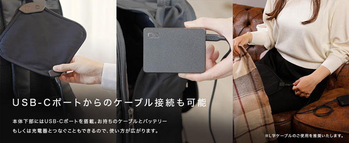 また、本体下部にはUSB-Cポートがついているので、USB-Cケーブルをつないで使用することもできます。