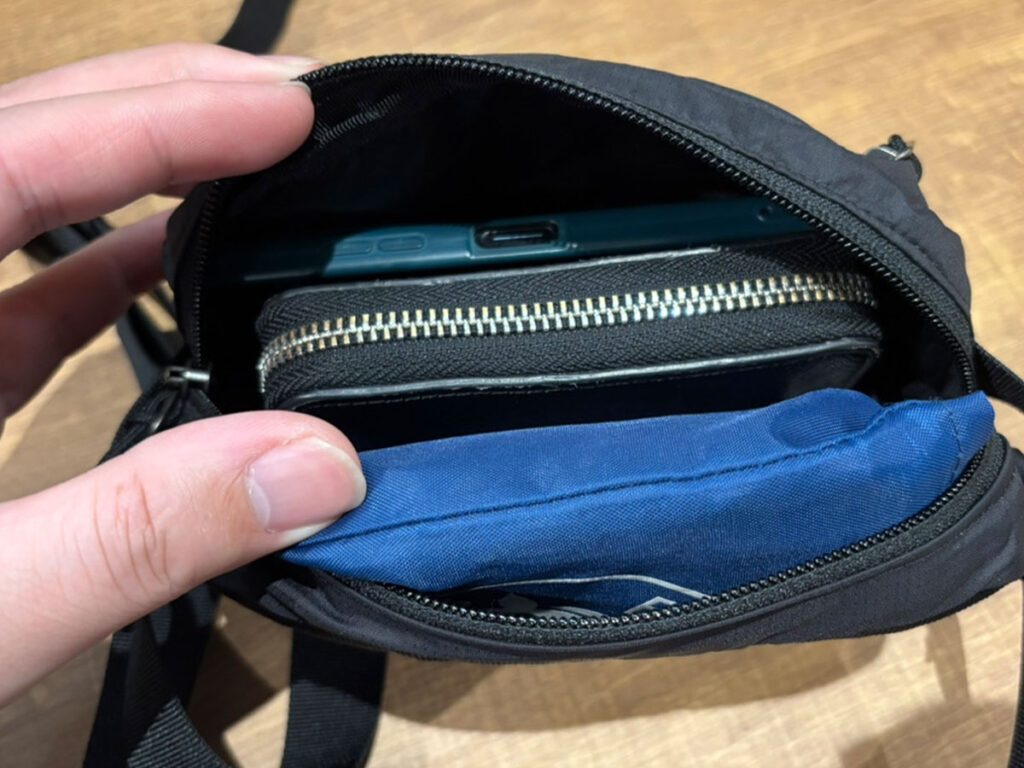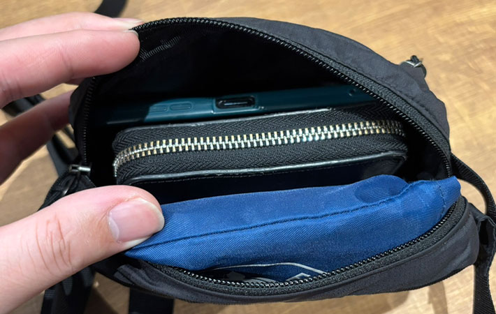 そのおかげでスマホや財布、さらに折りたたみエコバッグも入りました。
