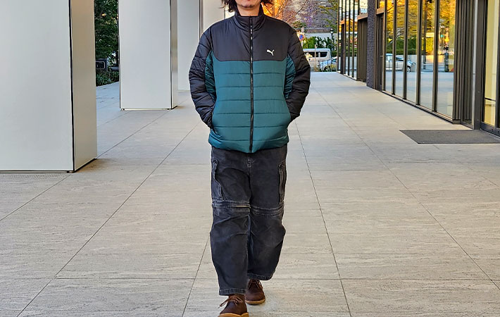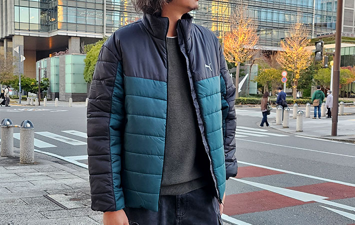 プーマの商品担当者から提供いただいた1着は、ふわふわと軽い着心地が特徴的な中綿のジャケット。
