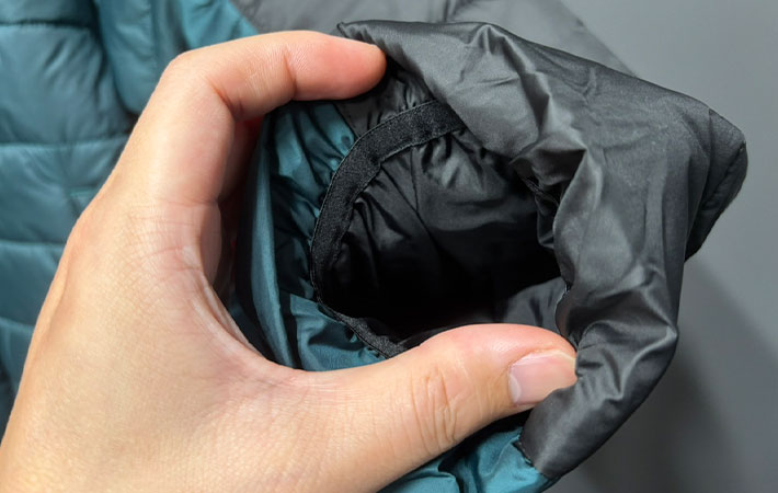 袖口のリブは内側にしまってあり、腕を振っても袖がバタバタと動かず、しっかりとついてきます。